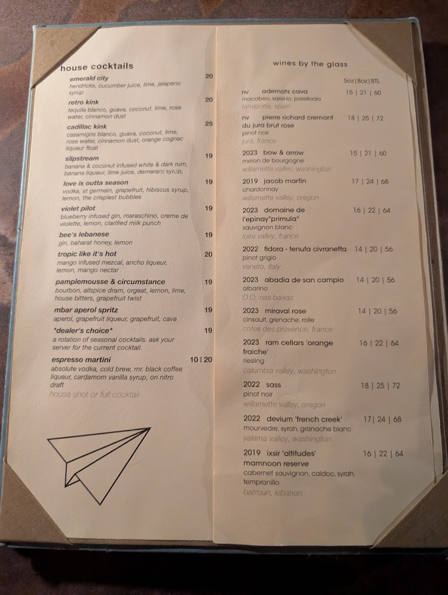 mbar - WA 98109 Menu